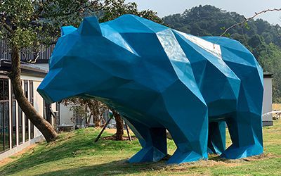 幾何塊面?玩兒的是抽象派!說白了,就是用方方、圓圓、三角這些基本幾何體,拼出個大致意思。啥材料都能玩這套,但目前最主流的是兩種?:金屬家族(不銹鋼板、鍍鋅板、鐵板),或者玻璃鋼。